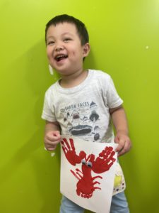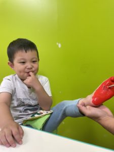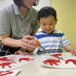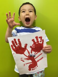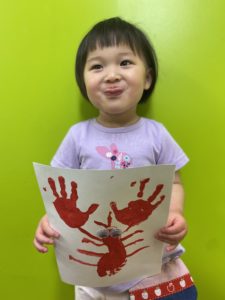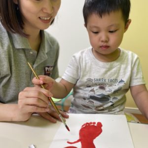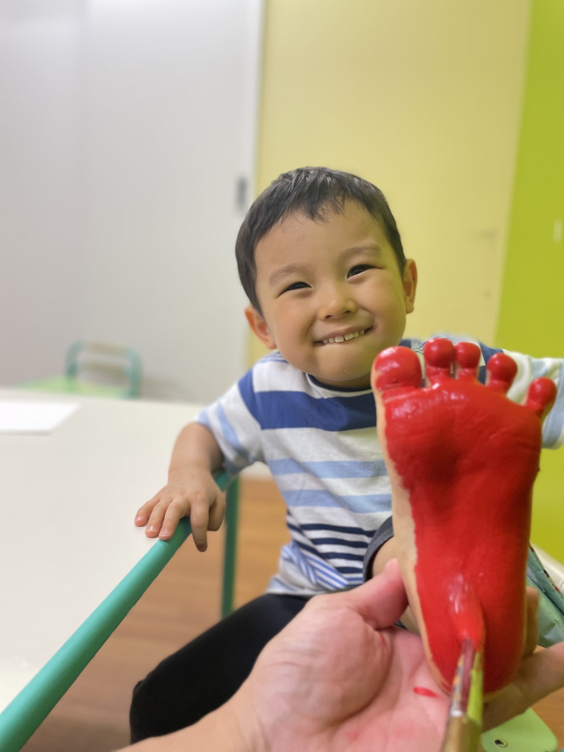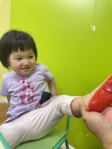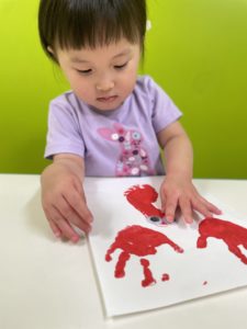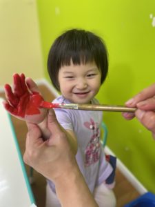 先生がHandとFootにRedの絵の具を塗り塗り…