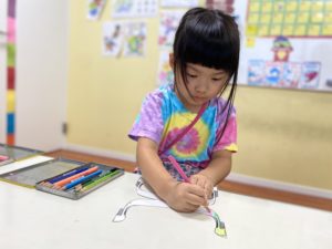 色鉛筆で自分の好きなデザインで色を塗ります。