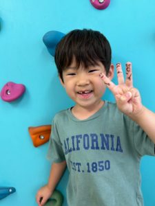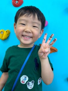 さて次に先生が子ども達の指にデザインしたイラストを水性ペンで描きましたよ!