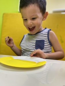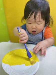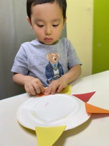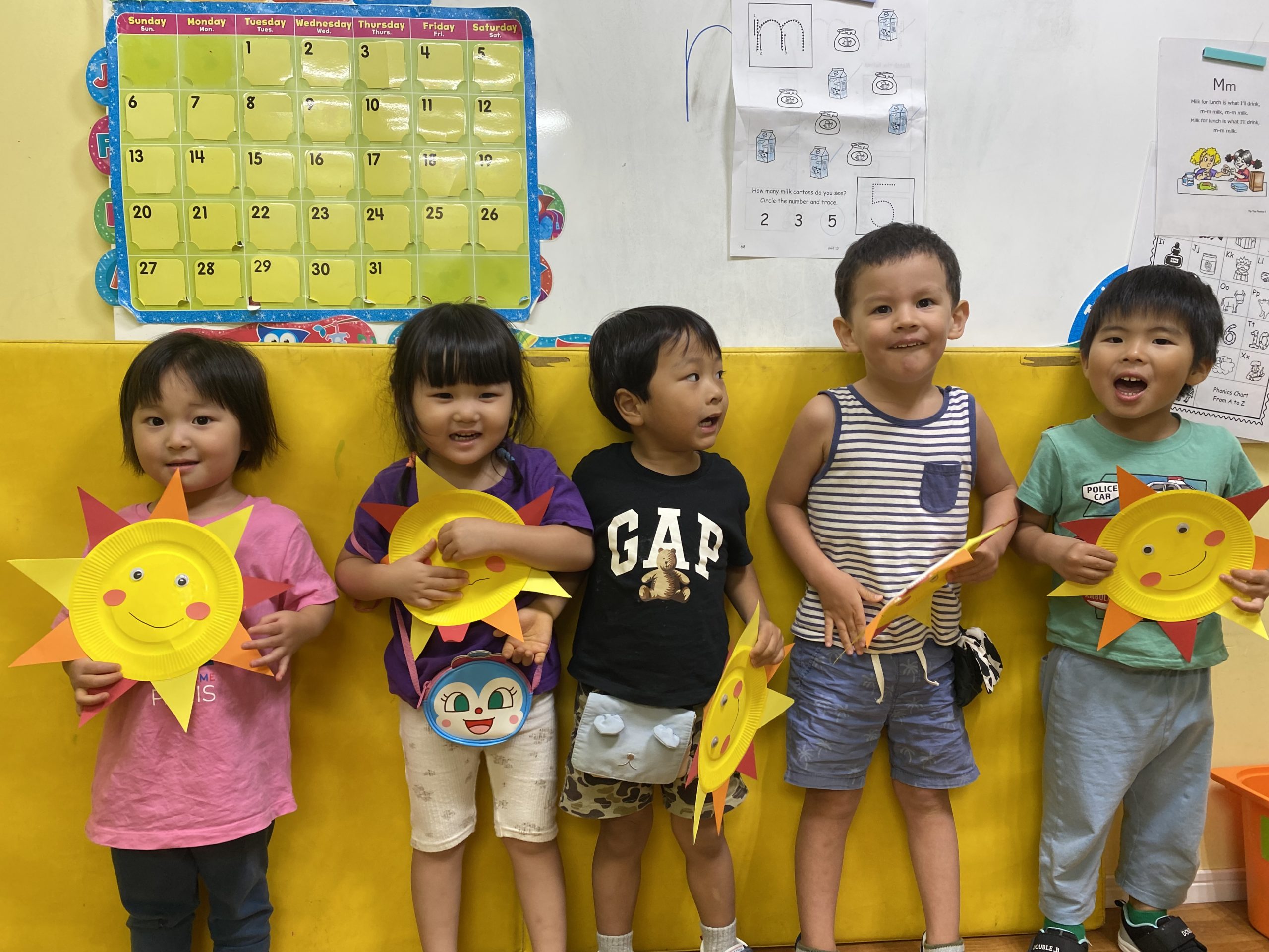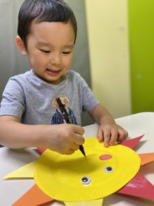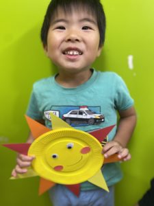 今日のArtの時間は生徒たちのようにまぶしい笑顔のSunを先生と一緒に作りました!