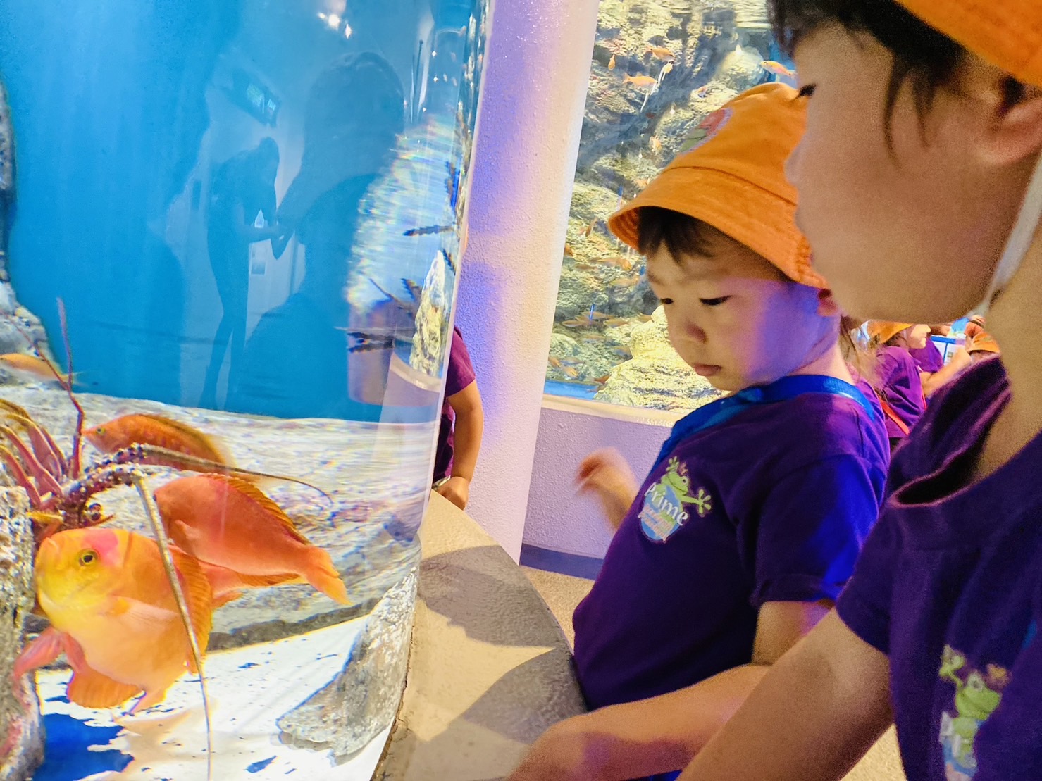 カラフルな魚たちに夢中な様子!オレンジや赤、青い魚などに興味を示していました。