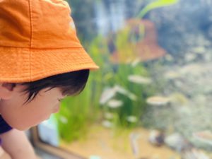 カラフルな魚たちに夢中な様子!オレンジや赤、青い魚などに興味を示していました。