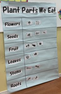 今日は野菜のどの部分を私たちは食べているのかについて学びました。