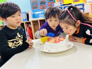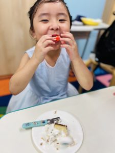 みんなでbirthday songを歌ったあとに、ケーキを食べました!