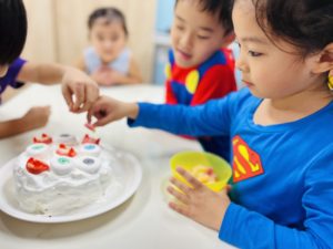 年長さんのクラスは先生と一緒に手作りケーキをつくりました!