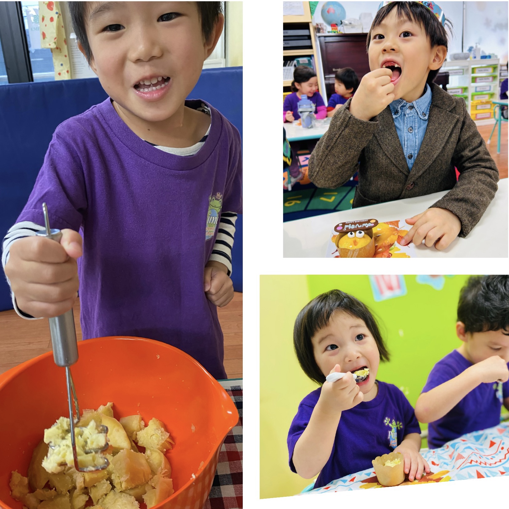 みんなで手作りスイートポテトを作って、お祝いをしてから食べました♪