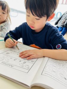 年少さんは新年度から数字を書く練習をしたり、数字をカウントすることを学びます。