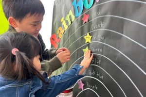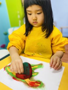 本日のArt Timeでは子ども達はステンシルを使った作品を作りました。