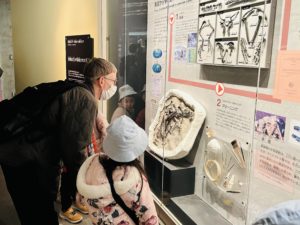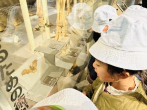 今月はちょうど恐竜について学習しているので、皆ゆっくりと骨格や化石をながめ、先生と話しが盛り上がっていました。