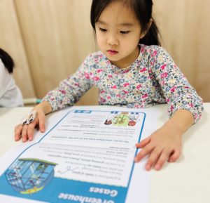 ワークシートを使って温室効果ガスについて学びました。