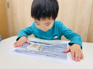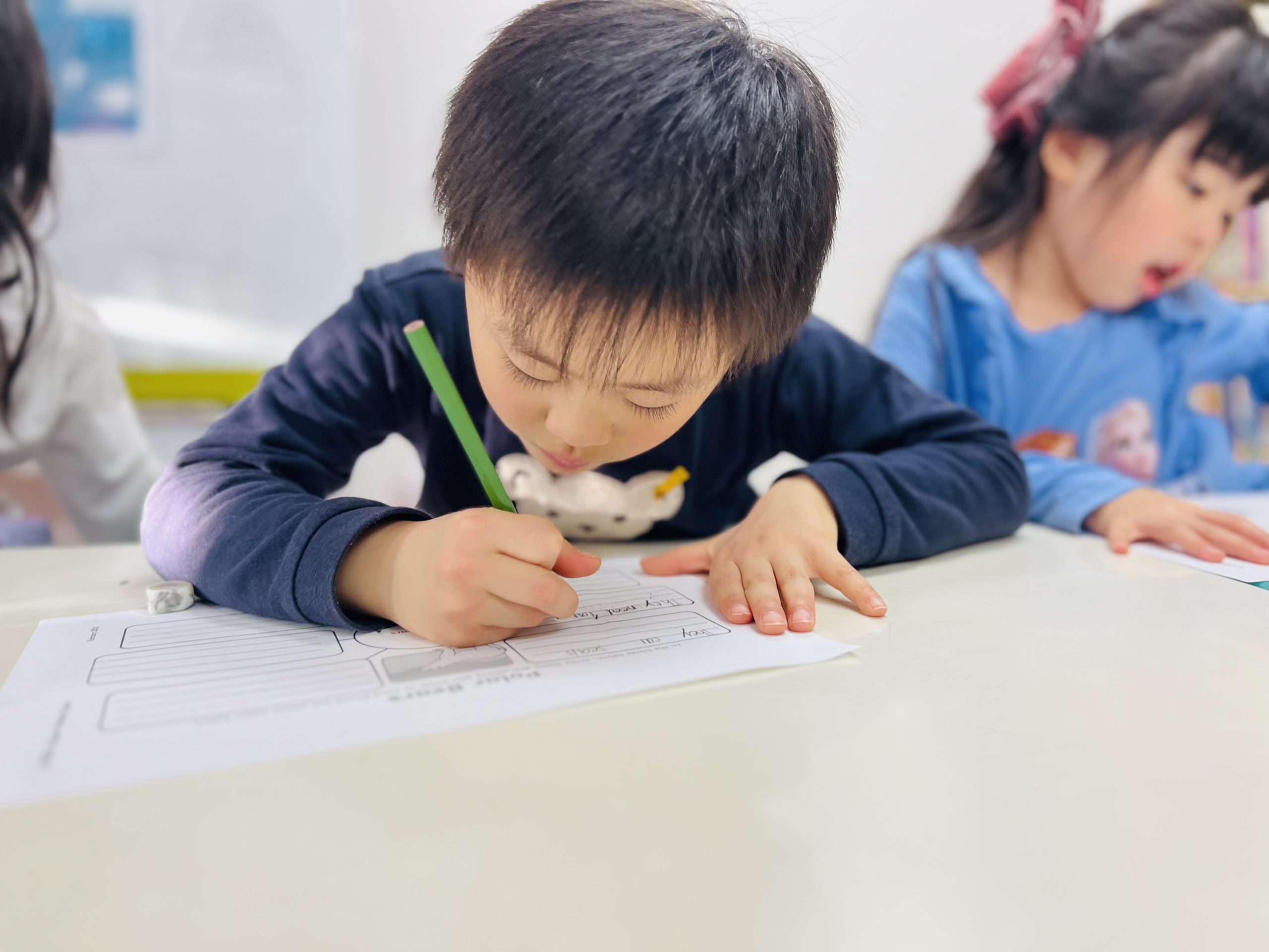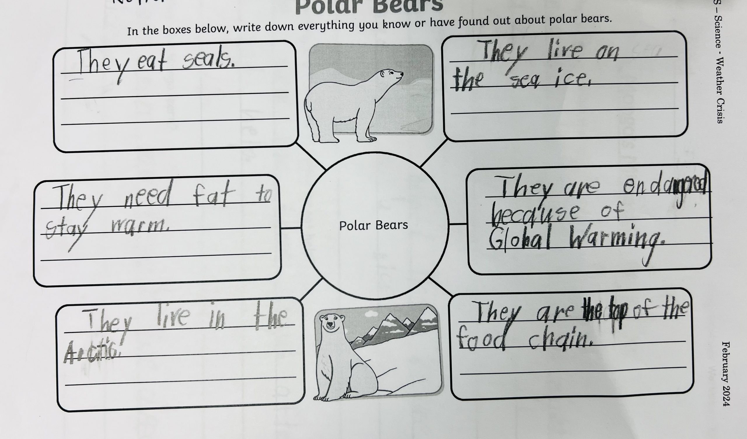 ホッキョクグマについて学んだ後、ワークシートに書き出しました。