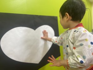 今日のP2(3歳児クラス)は皆で1つの大きなHeartを作りました!