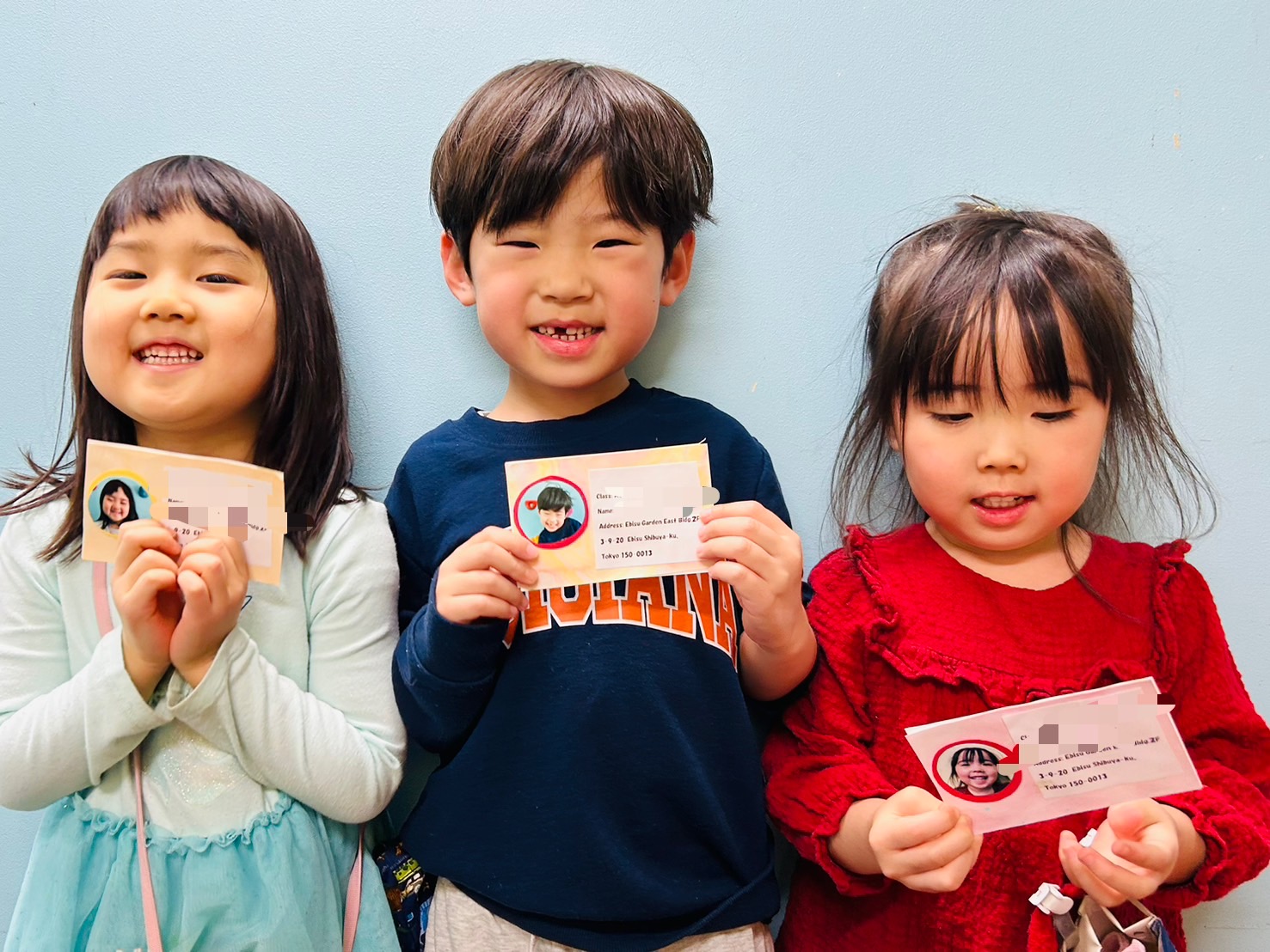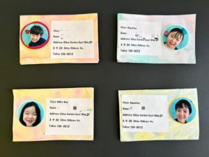 模様入りのカードに自分の写真とPersonal Infomationをのせて…