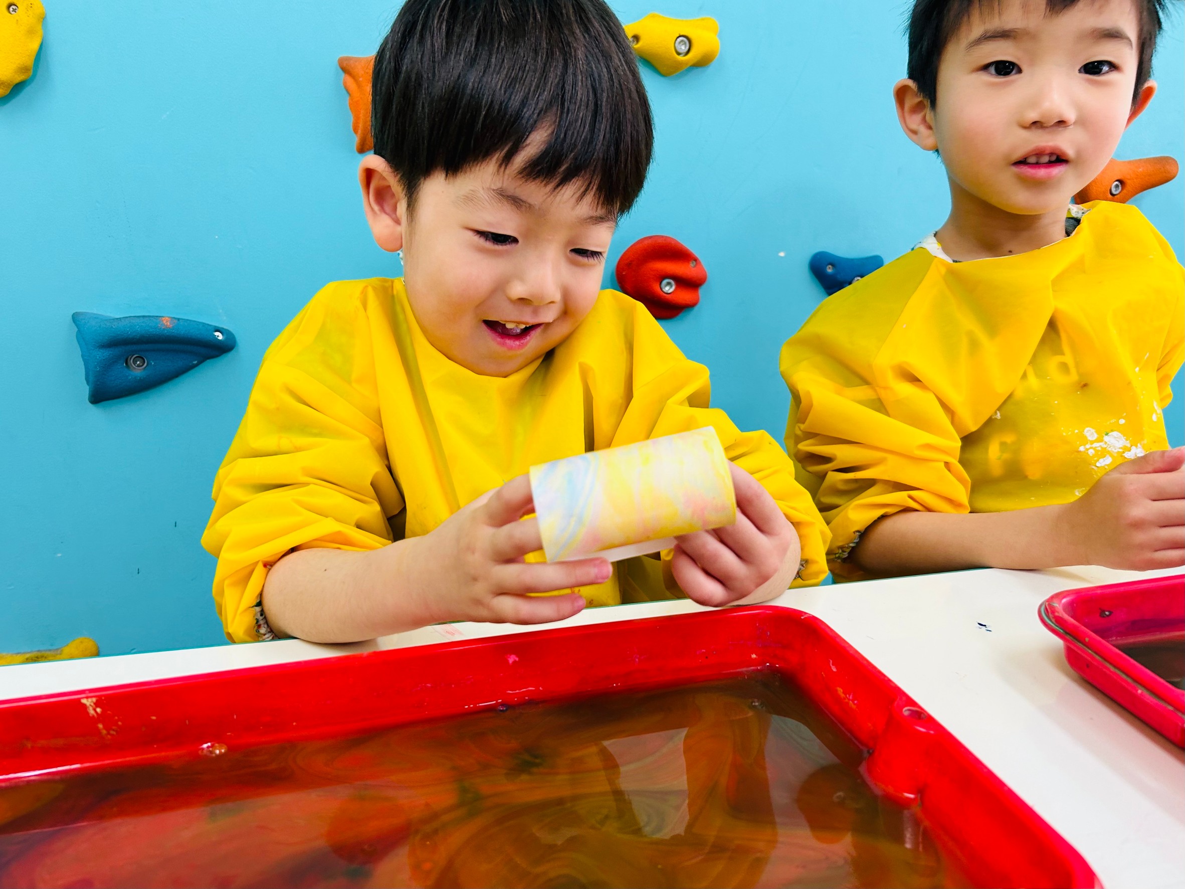 年少さんはMarble paintを使ったのは初めてだったので出来上がりにみなわくわくしてました!