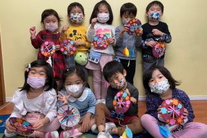 年少さんと年中さんはEaster egg huntで使うEaster basketをデコレーションしました!