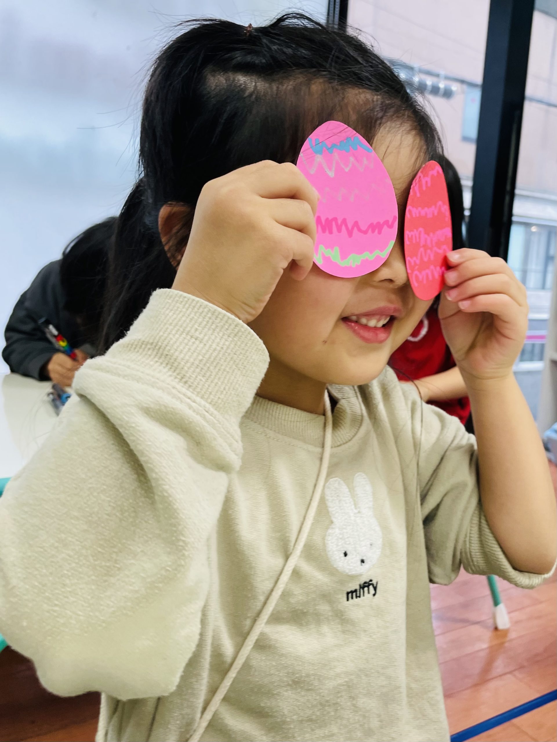Eggを目に当ててお茶目な生徒さん👀