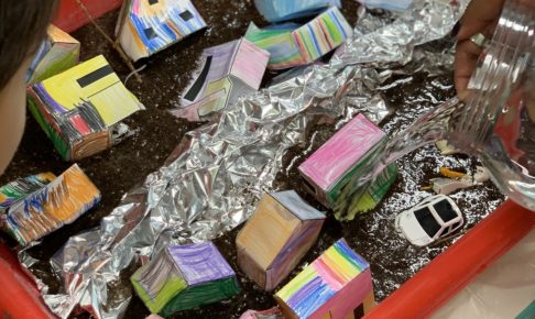 今月のMonthly Themeは、Rainy Days ☔️ です。雨について学んでいきます。 今回は「洪水」について、洪水とは何か?起きるとどうなるのか?実際に再現しながら学びました。 英単語の学習から始まり まずは…