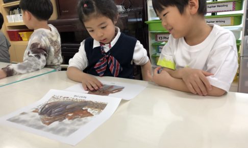 今月のMonthly ThemeはAnimal Homesです。 今日は貝殻を背負って移動するヤドカリの生態を学習しました。 今日も単語の学習からクラスがスタートしました。 そして先生とヤドカリについて話し合いました。 …