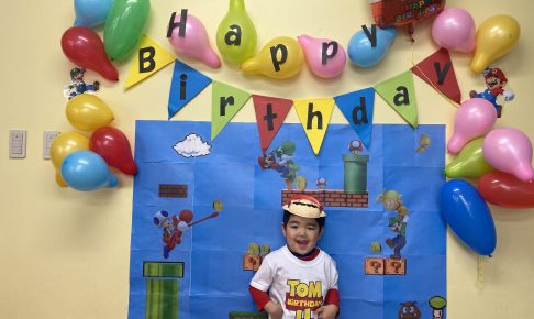 3月のバースデーのテーマは“Mario”です。 水曜日のSocial Studiesの時間にマリオについて学んでいる子ども達はキャラクターなどに詳しくなっています。 カップケーキにマリオカラーに合…