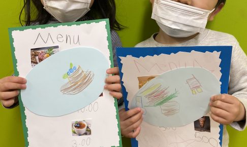 いよいよ今日はレストランオープン当日です! ウェィターとお客さんに別れてロールプレイを行いました。 カスタマーはメニューをみてそれぞれ食べたいものをしっかりセンテンスを使いオーダーできました!…
