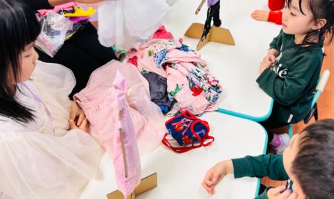 今月のMonthly Theme は、It’s My Favorite です。 今週と来週を使い、ファッションデザイナーのように洋服を作るプロジェクトを行います。 今回は先週作成したデザイン画を参考に、布を選ぶところから…