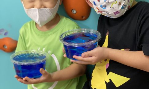 本日は… 今月のMonthly Theme “Ocean Life”に因んで、世界にたった1つの “My Little Aquarium”を作りました! First, we…