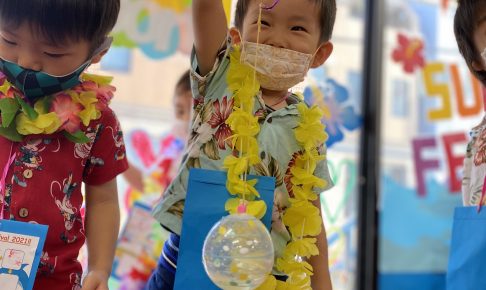 今日は待ちに待ったSUMMER festivalでした。 朝から満面の笑みでアロハシャツやアロハドレスで登場してくれました。 Photo ブースでも最高の笑顔です! Yo-Yo釣り、スーパーボ…