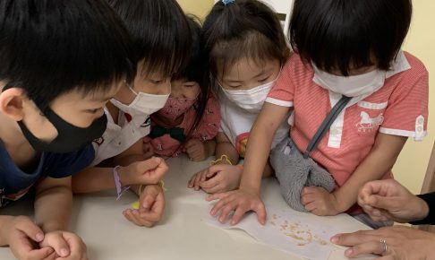 今日は”Grains”について学びました。 パン、ご飯、スパゲティ、、世界には色々な主食がありますよね。どこの国でどんな穀類が食べられるか調べてみました。 また稲穂をよく観察し石を使いお米を取り出…