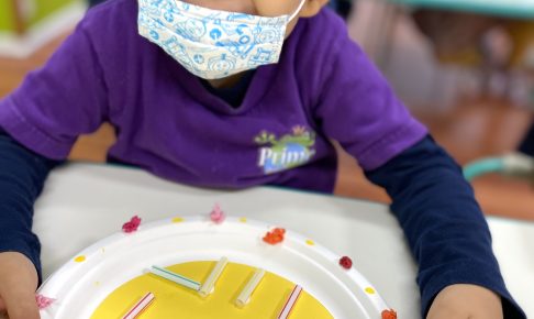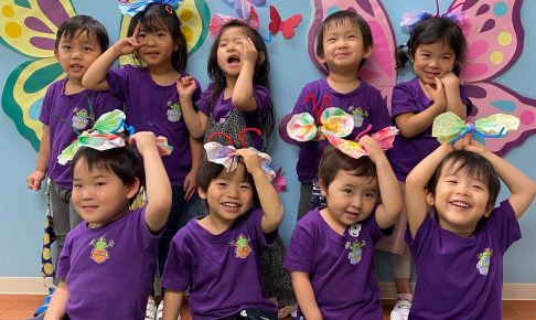 今日のFun Fun Fridayは楽しいアクティビティ盛り沢山! 今日のテーマは”Fly High,Fly Low”です。 午前中はヒラヒラ飛ぶバタフライを作り公園へ…